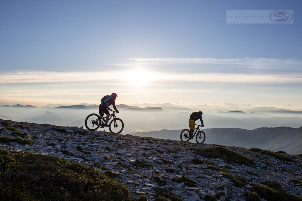 Wir haben Tagesetappen von bis zu 1000 Höhenmetern und bis zu 3000 Tiefenmetern pro Tag. Es gibt Teilstücke von bis zu 500hm, wo Ihr Euer Bike schieben oder tragen müsst.