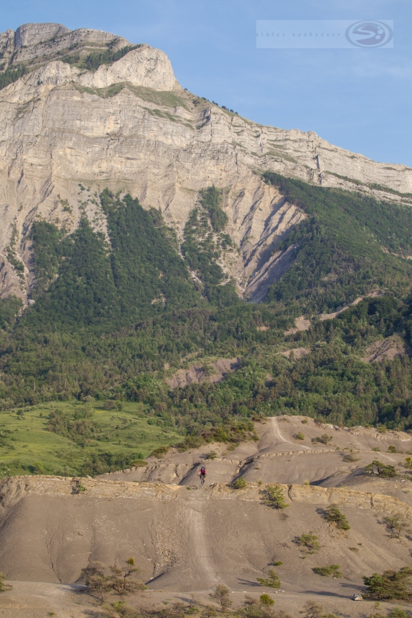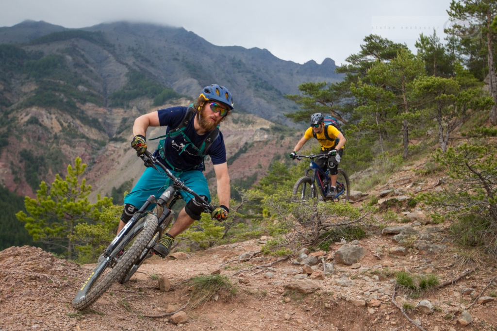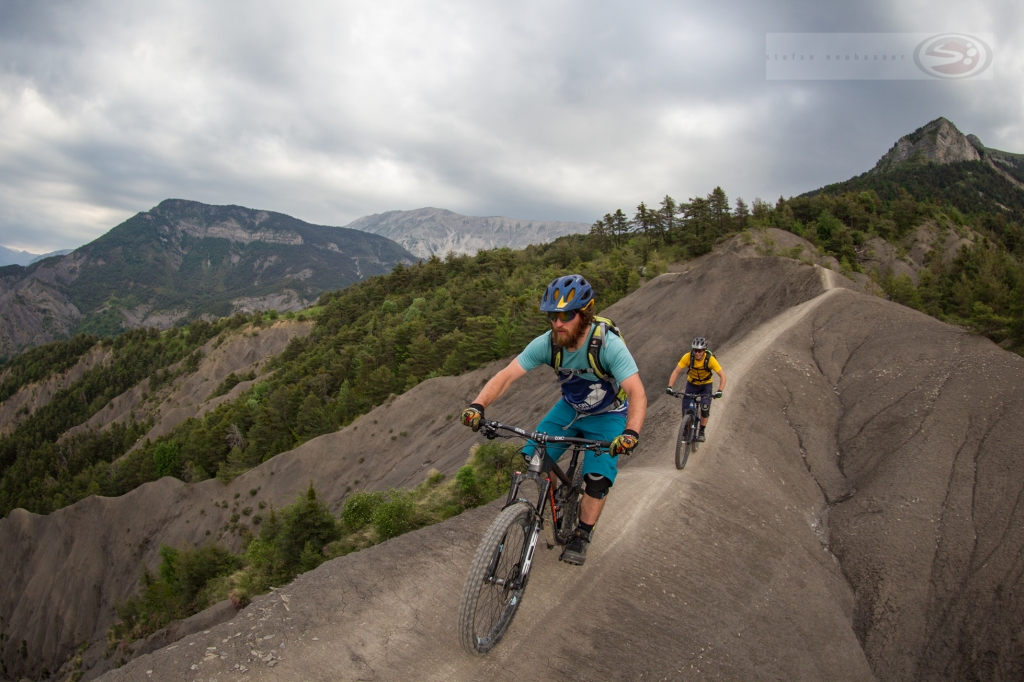 Die Alpes de Haute Provence sind ein Hochgebirge mit Gipfeln, die bis zu 3000 hoch sind. Das vergisst man allzu leicht, wenn von der Provence die Rede ist. Unsere Endurodurchquerung findet die ersten Tage in hochalpinen Millieu statt, bevor sie langsam in niedrigere jedoch immer noch wilde Bergregionen übergeht und in der Provence endet. Dank Shuttle-Unterstützung bewältigen wir einsame hochalpine Etappen, während derer wir völlig auf uns alleine gestellt sind. Der Fahrer und sein Bike verschwindet zu unbedeutender Grösse in dieser weitläufigen und einsamen Landschaft. Die Trails sind oft endlos und überwiegend feinstes Endurobikegelände. Die Tour ist ein Mix aus Trailspass, Ernsthaftigkeit und Landschaftserlebnis.