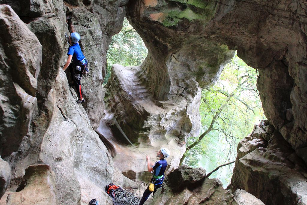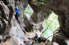 Zur Abwechslung begehen wir eine abenteuerliche Höhle, dabei wird das Thema abseilen geschult.